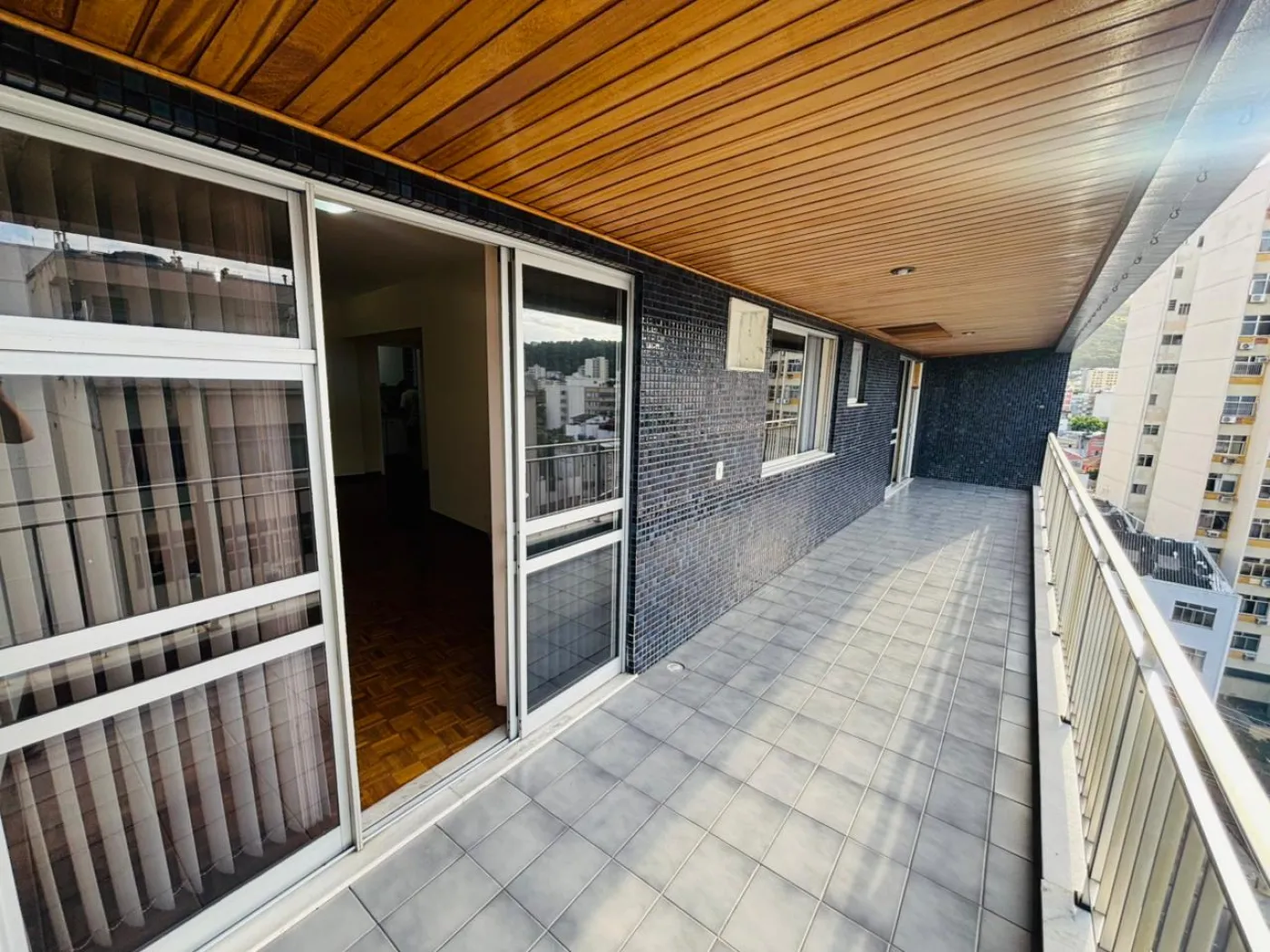 Mega varanda que percorre toda a extensão do apartamento