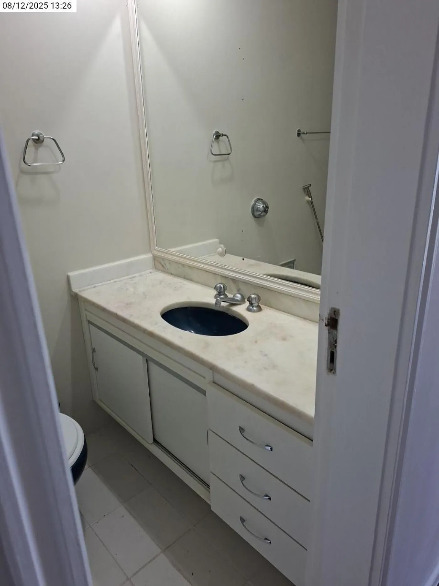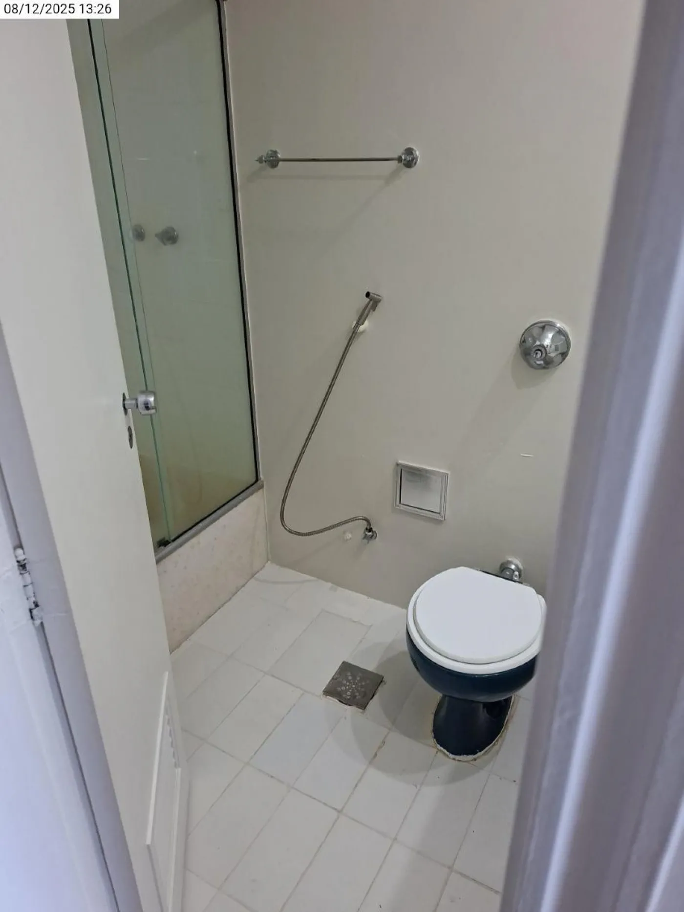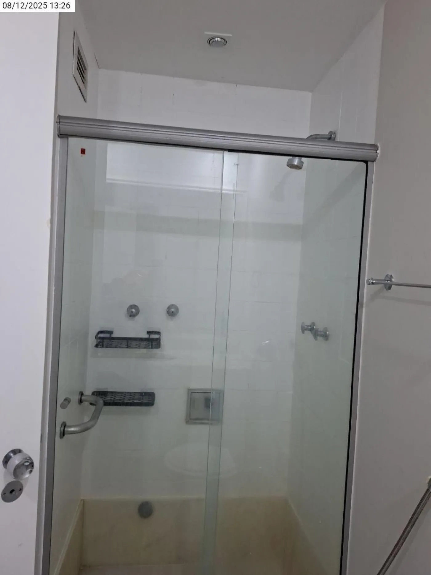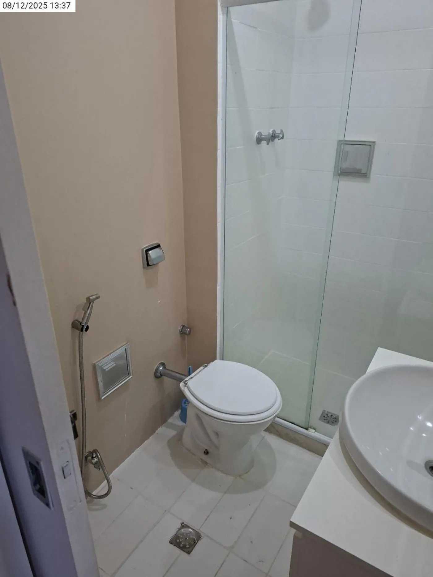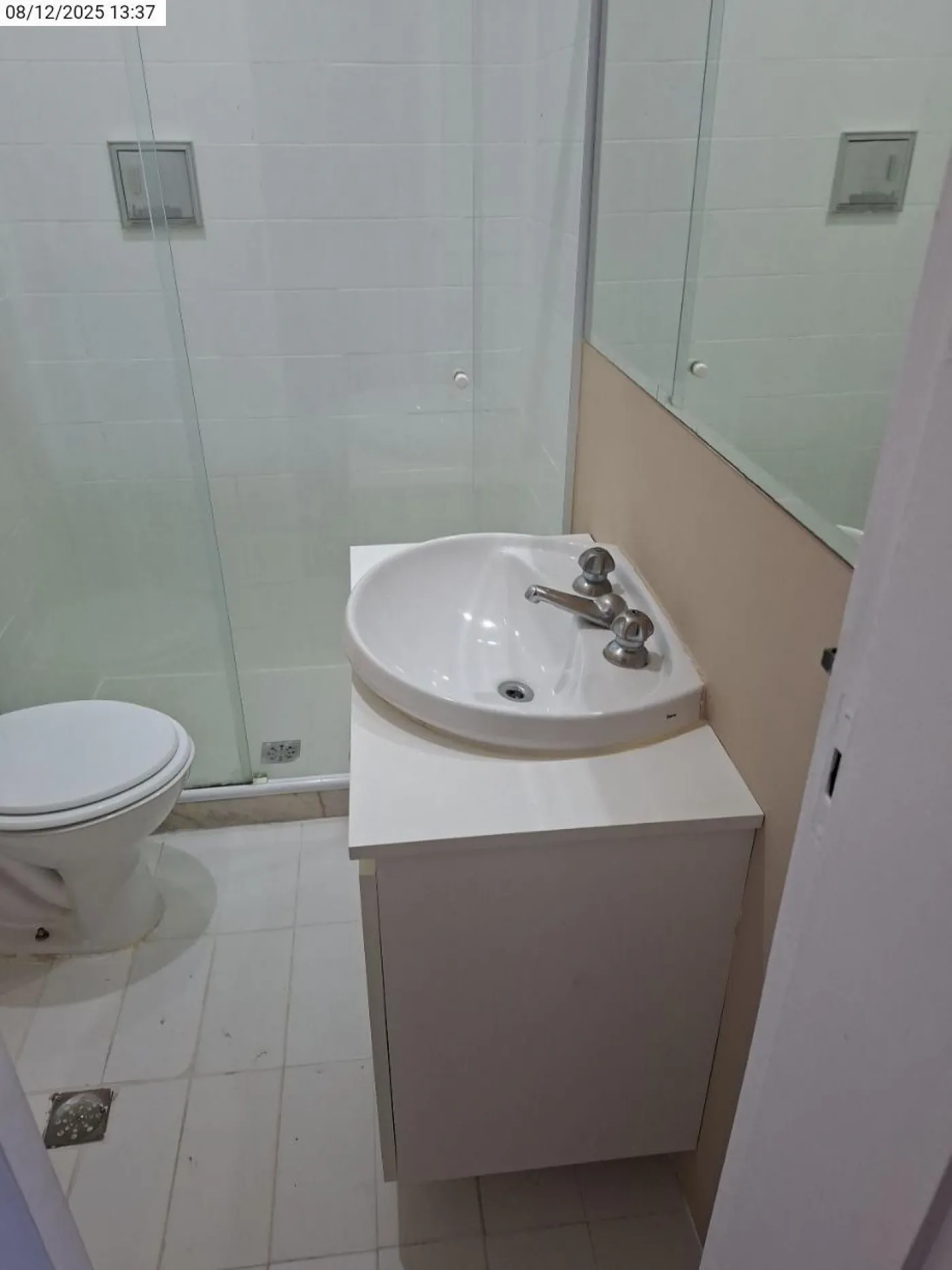 Banheiro social com armário e box Blindex