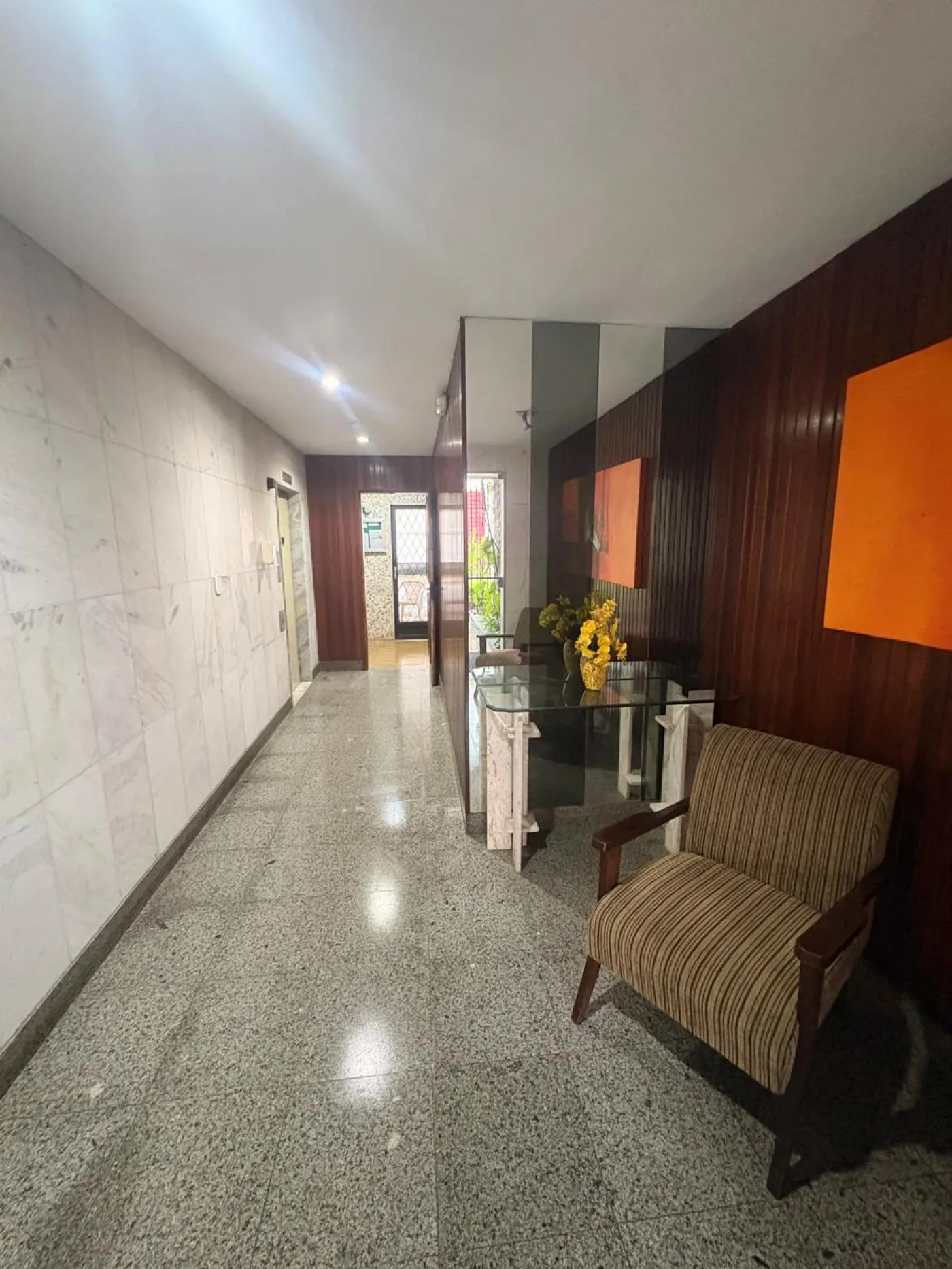 Área social com piso em tábua corrida de madeira de excelente qualidade