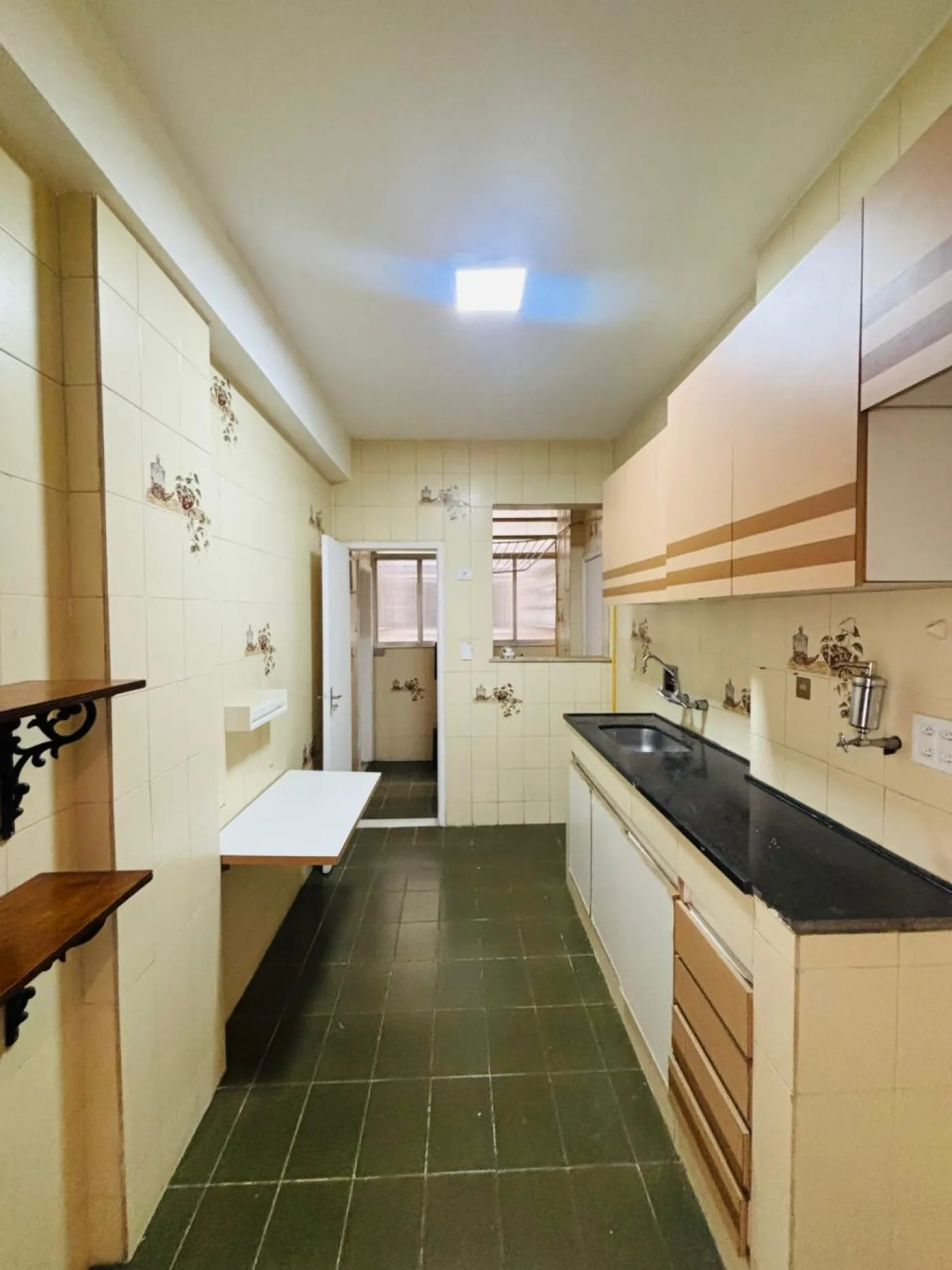 Possui banheiro amplo, com box, armário e grande bancada, oferecendo praticidade e conforto. São dois excelentes quartos, ambos com armários embutidos, garantindo ótima organização. A cozinha conta com armários, além de área de serviço e dependência completa, o que traz ainda mais funcionalidade ao imóvel.