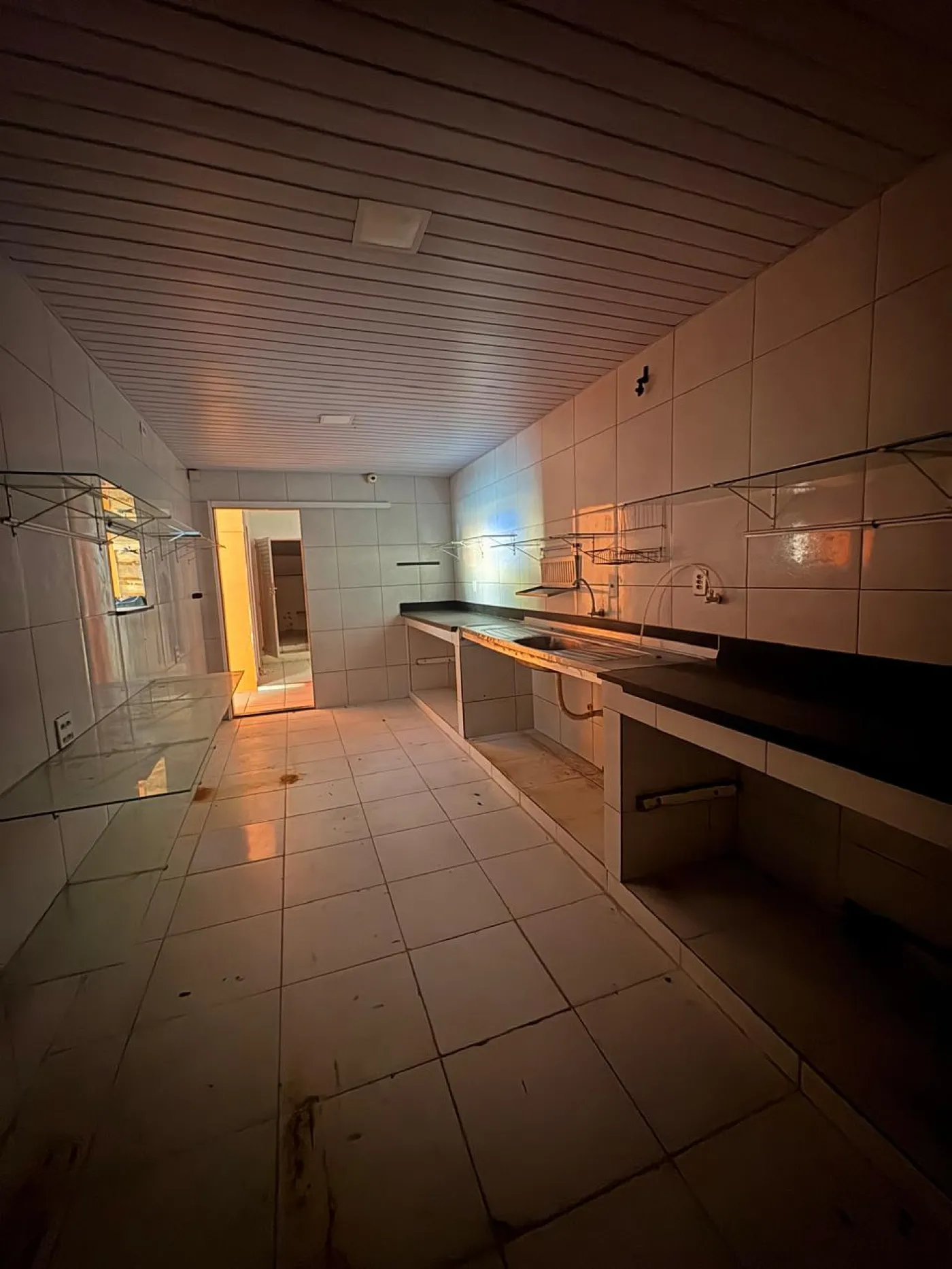 Conta com dois banheiros (masculino e feminino), além de uma cozinha ampla, muito agradável, com despensa. No piso superior, há um sótão espaçoso, ideal para armazenamento ou apoio operacional.