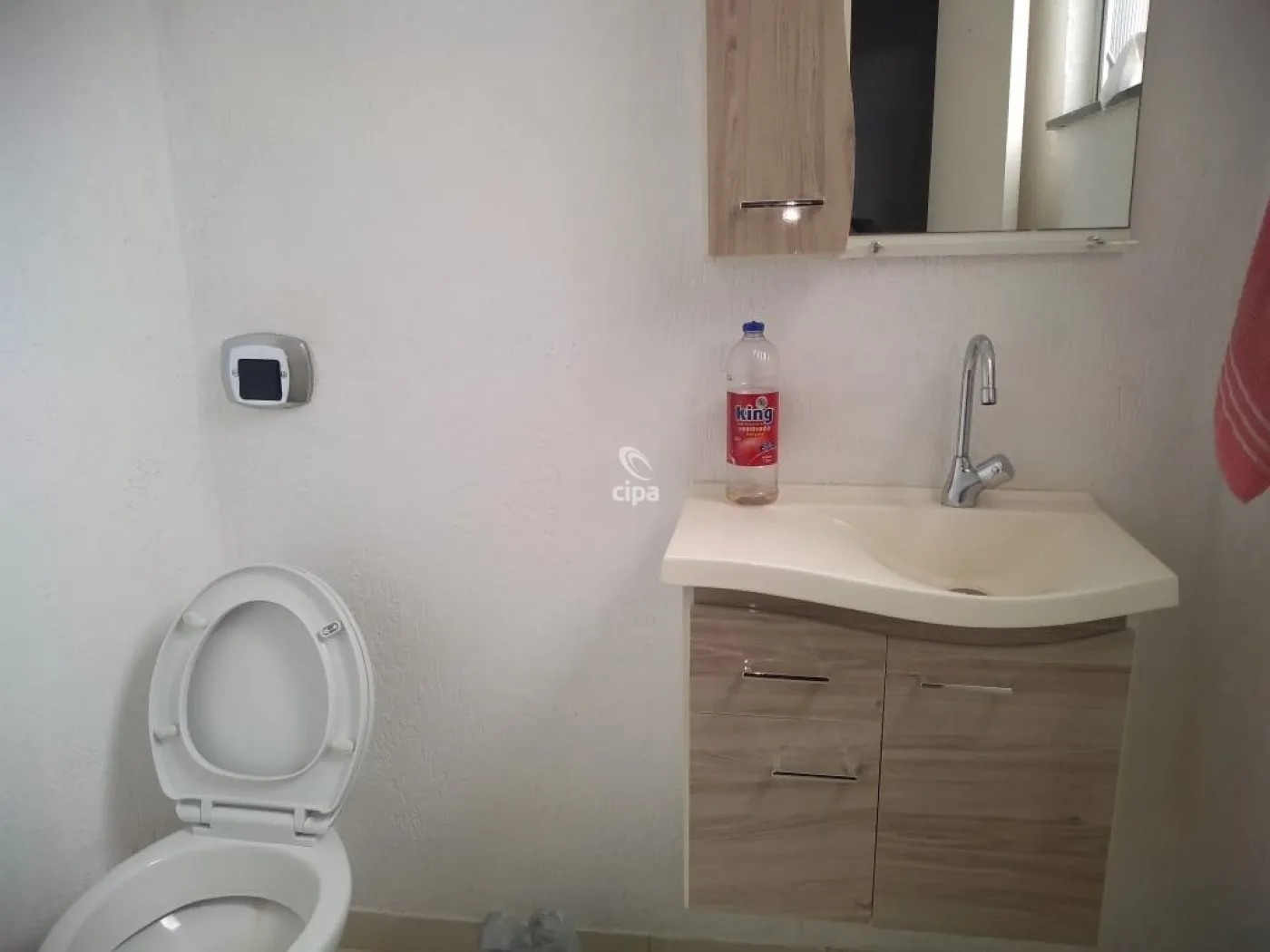 Sala espaçosa e arejada com banheiro.